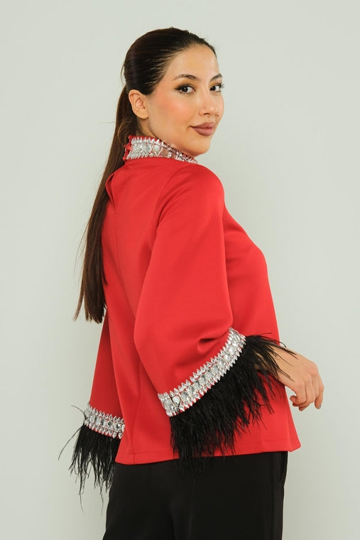 Women's Dressy Rhinestone Beaded Neck Tops. Black, Red, Leopard print